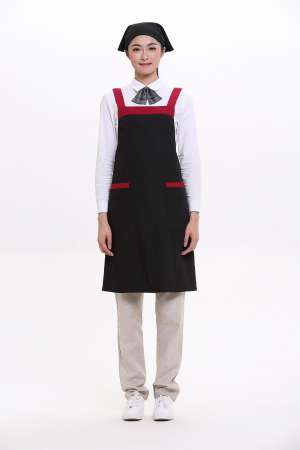 - 日式簡約撞色時尚家居圍裙9238紅色/黑色半身女款工作服